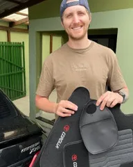 "Trabalho com o carro e a limpeza era meu maior custo. Agora eu mesmo limpo o carro em 2 minutos no posto. O tapete não escorrega nada, é muito seguro."